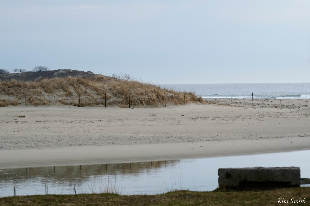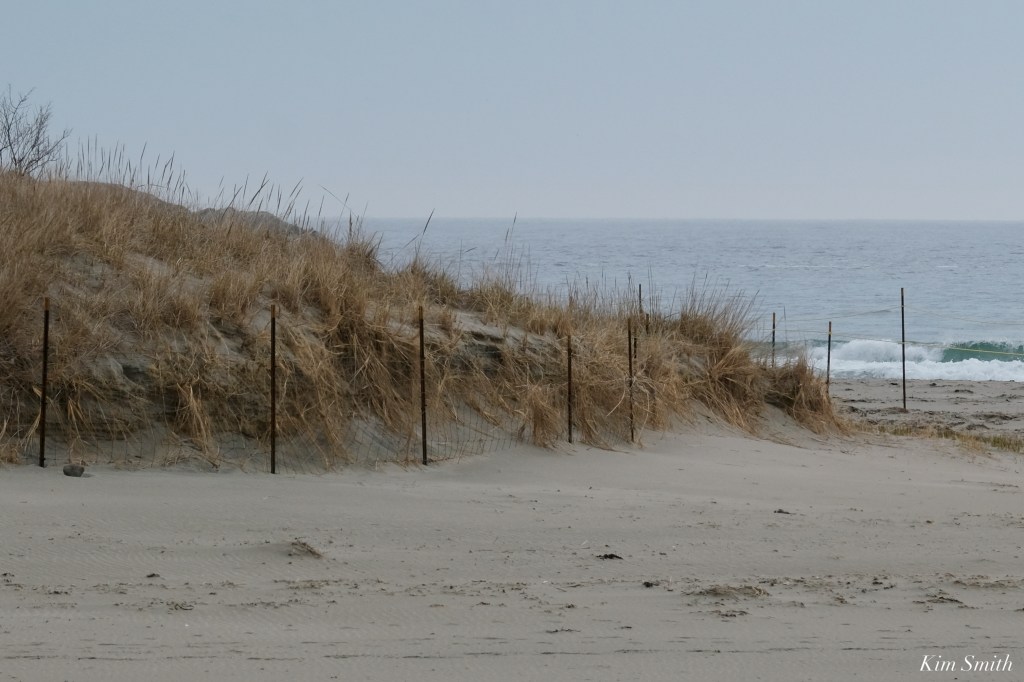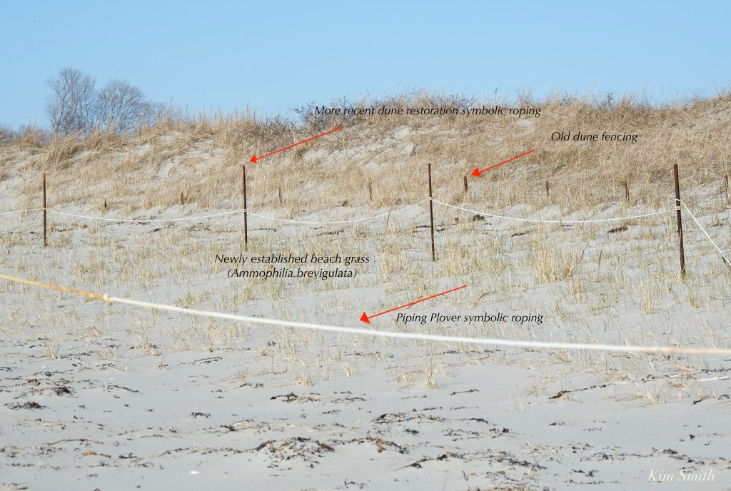 Despite the extremely high storm tide going all the way to the base of the dunes, Good Harbor Beach survived the storm fairly well and looks better after this nor’easter than any nor’easter that I can recall. Why you may wonder? As a direct result of the symbolically roped off areas in place for the Plovers, beachgoers and pets are restricted from recreating right up to the base of the dunes. This has allowed native vegetation to take hold, and in some areas, to thrive. This vegetation, such as beach grass and Sea Rocket, holds the sand in place and is our very best defense against rising sea level and the ravaging effects of the highest of tides and gale force winds.