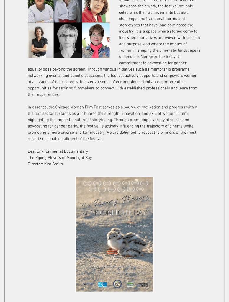The Piping Plovers of Moonlight Bay Receives Best Environmental Documentary at the Chicago Women’s Film Festival!