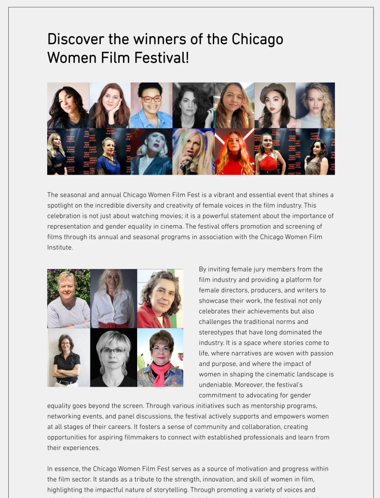 Thank you for this tremendous honor Chicago Women Film Festival!