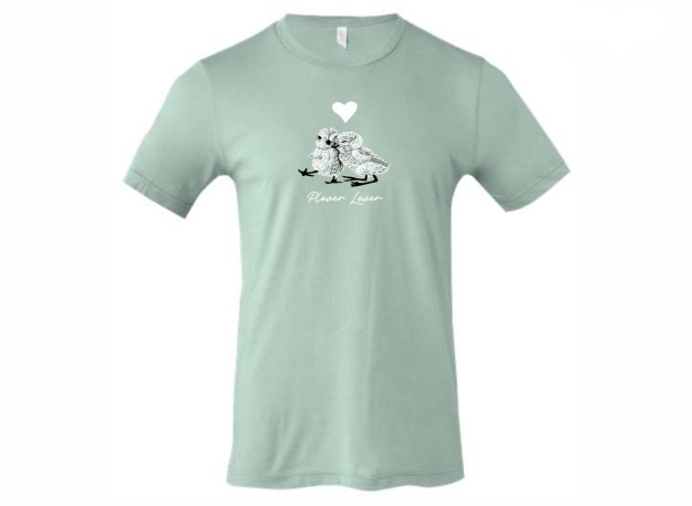 We also have all new Plover Lover T-shirts in all sizes and a great color, a sort of light sea green. For fans of West Coast Snowy Plovers, these chicks could easily pass for Snowy Plovers too. Please let me know if you like the new color. They are a beautiful quality, all cotton, unisex sizing from xs to xl. The Tees are 30.00 plus 5. shipping.