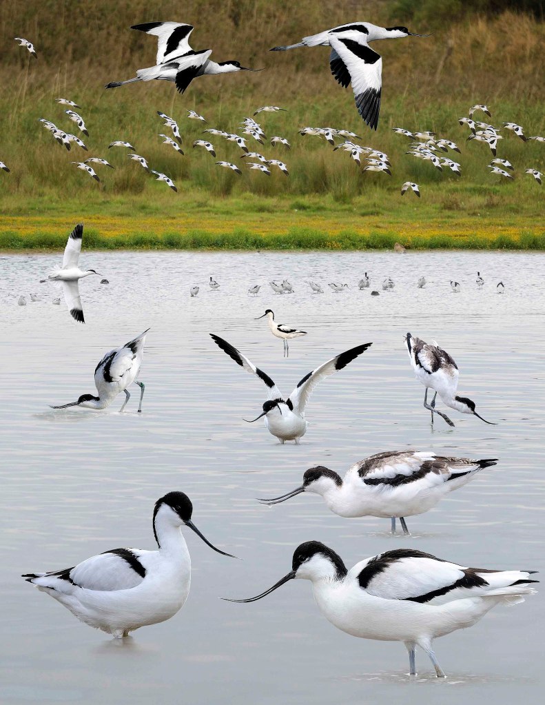 Isn’t this bird just beyond exquisite?! The Pied Avocet. It returns each spring to the Bay of Somme to breed. I read that after mating, a pair will cross their bills as part of the bonding ritual, and you can see how absolutely adorable are the chicks. Composite image and chick photo courtesy wikicommons media.