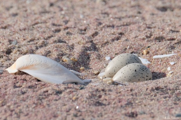 I think my daughter may have solved the Mystery and we believe this Plover could be what would now be the 54-day-old fledgling we were calling Butterball. He appears to be a similar stage of development and it makes sense; after Butterball’s Dad departed, Butterball attempted to forage alongside Fierce Dad’s chick several weeks back, but FDad would have none of it and was in maximum defensive mode for his little one at that time. Now that his chick is older and more independent perhaps he feels it’s safe to socialize with other Plovers; although at one point FDad planted himself firmly between his chick and Mystery.